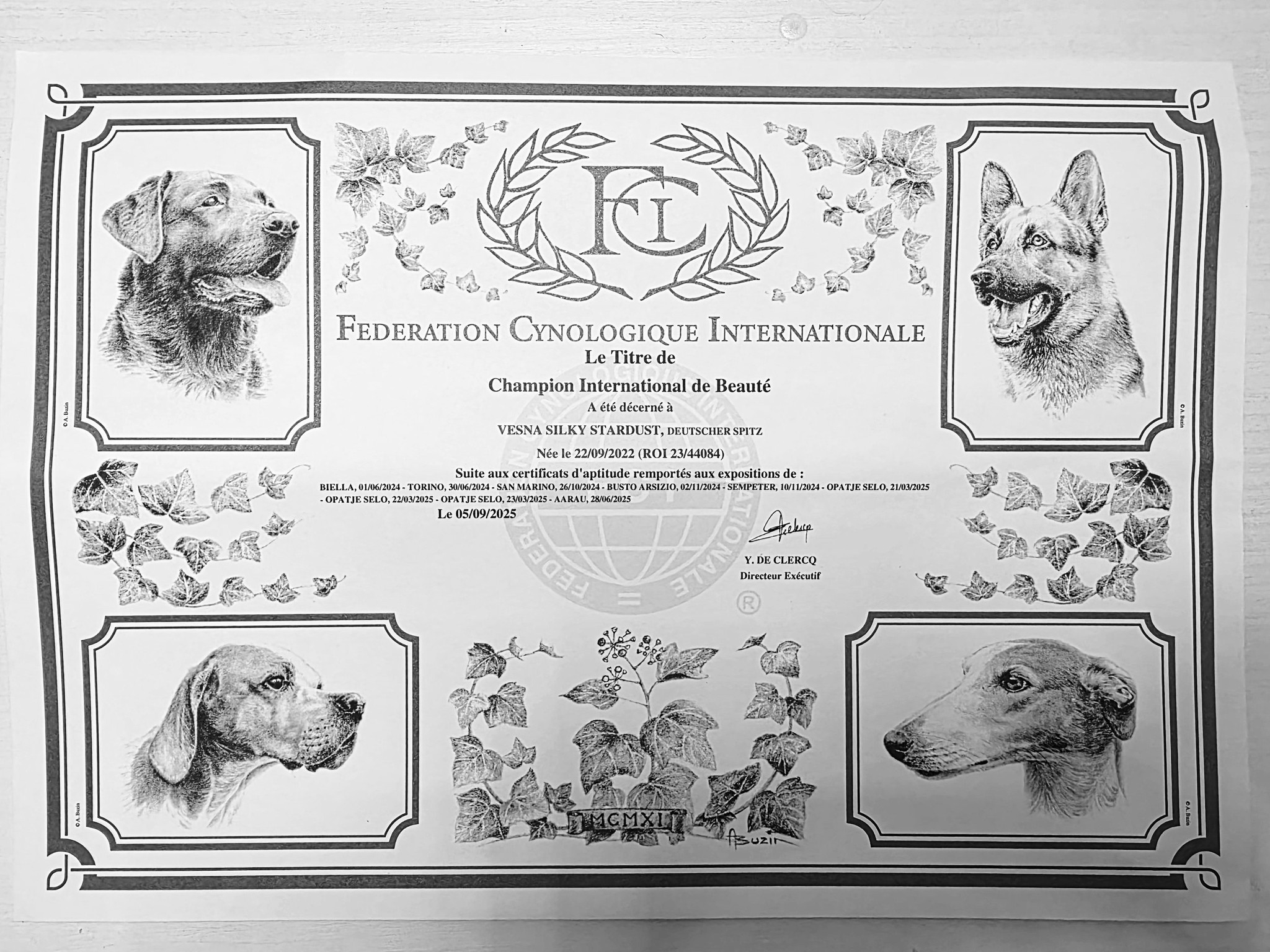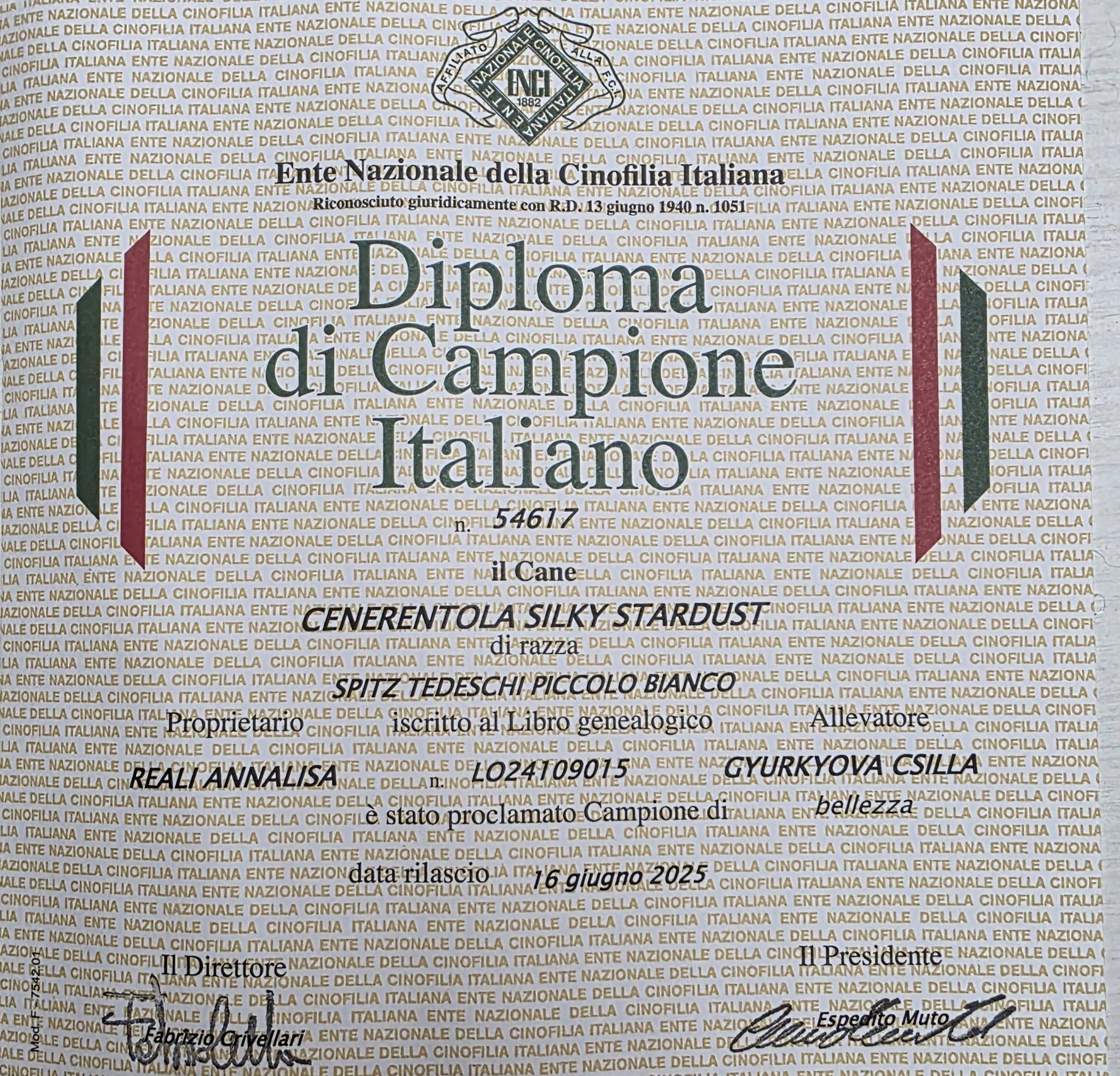 Tutti i nostri Kleinspitz sono dotati di pedigree certificato e vantano un palmarès ricco di successi nelle competizioni italiane ed internazionali, testimoni del loro valore e della cura che mettiamo nell’allevamento.